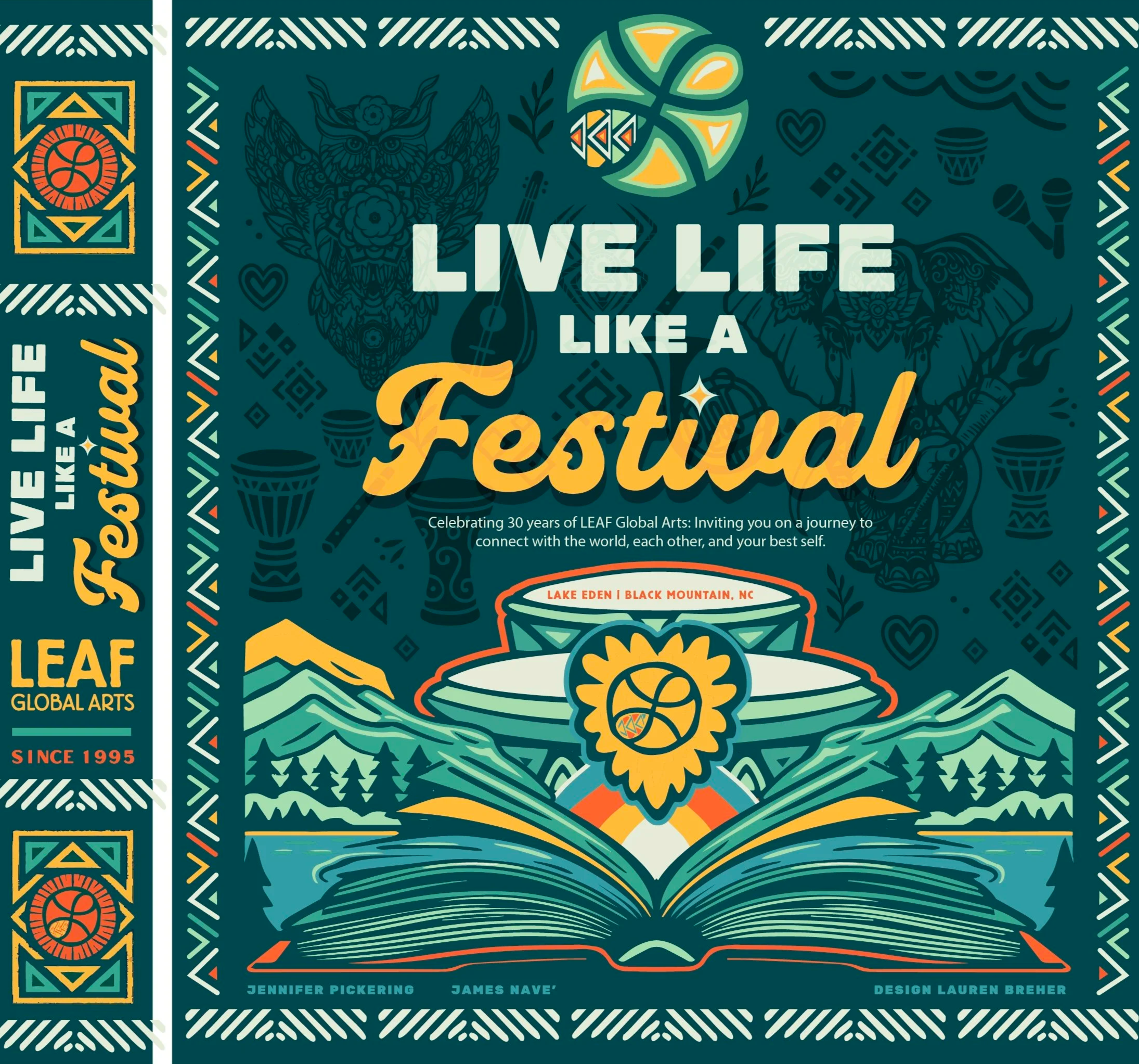 Live Life Like a Festival is a vibrant 240-page interactive coffee table book that celebrates 30 years of LEAF Global Arts and invites you to carry its creative spark into your own life.